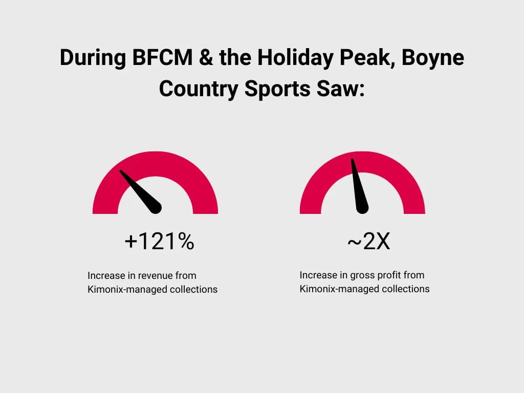 By automating collection sorting in real-time, Kimonix ensured Boyne Country Sports consistently surfaced the most profitable, high-performing products as demand shifted during BFCM.