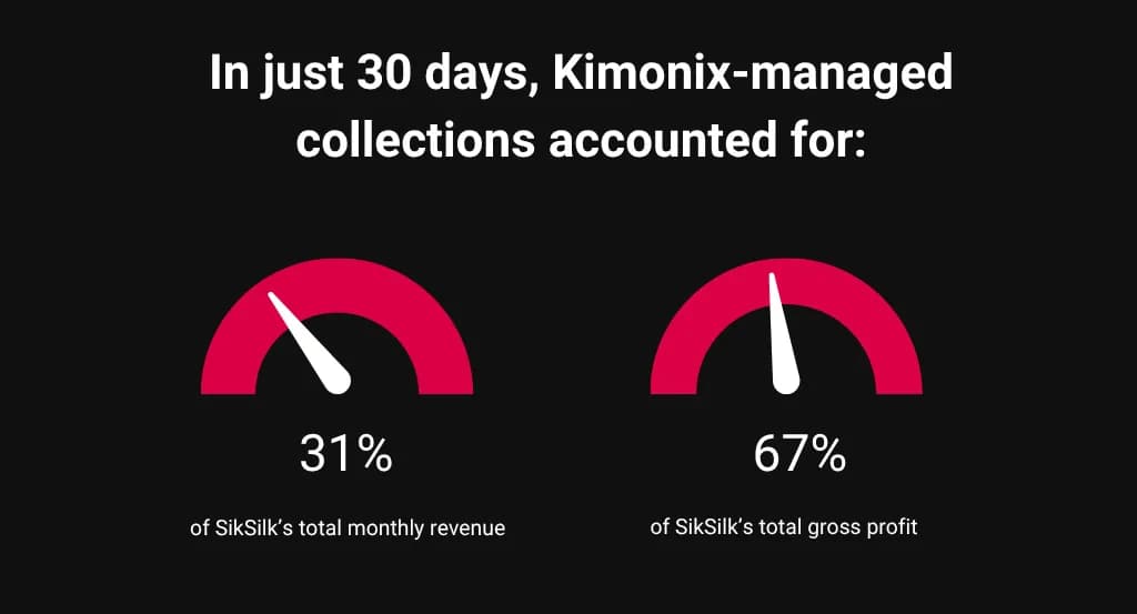 Over a period of 30 days, SikSilk's Kimonix-managed collections generated 31% of the brand's total monthly revenue and delivered an impressive 67% of total gross profit.